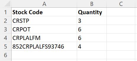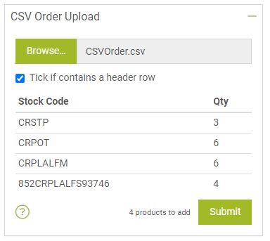 No need to hunt around our site for your order items: if you know the product codes for the items you wish to buy simply use the form below to enter a product code and quantity for each part of your order then add them all directly to your shopping basket.